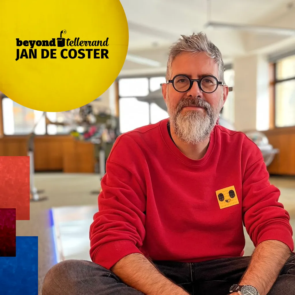 We have a robot who did family therapy, which is Leo, also a very large robot who was in Düsseldorf five years ago. And he was an experiment for a telecom provider in Belgium. Kids could get inside the robot and they would control the arms of the robot and their parents would be on the side controlling the wheels. And together they had to solve a number of challenges in a short amount of time. And it was a metaphor for the ever-changing digital world, where kids often know more of the technology than their parents, so they have to learn to get on the same track as fast as they can. And Leo changed recently because he was recycled for Recupel, which is a company responsible for recycling all electronic equipment in our country. And this is him now, so you still recognize a little bit of the robot, but he has now a large screen and he explains to children and other people what happens to their old laptop or TVs when they go to the recycling point.