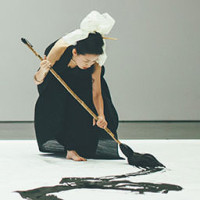 This was the last series of the reincarnation. I was looking for eternity when I was wring this piece. I love seeing how the poem is transformed into music and choreography and fill up the space while I perform. Music is one of the main inspirations in my work, so I love seeing my words in calligraphy transformed back to the sounds by composers and sound artists, who I respect. Me writing these words onto the bodies are, to me, symbolizing how an innocent baby like a blank canvas, as they grow, gaining words of wisdom. During the performance, it feels like my body and brush just become a conductor of that vision.